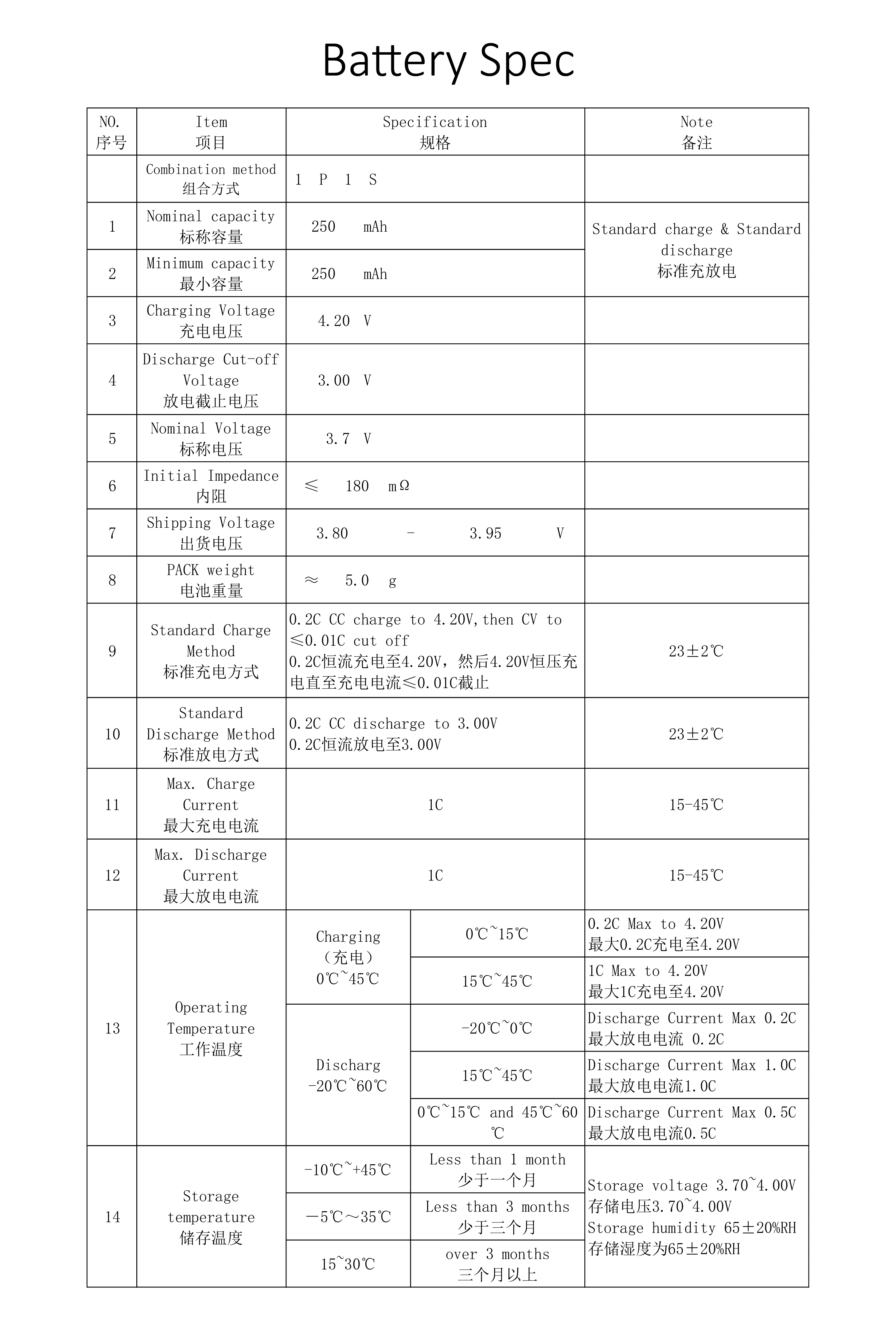 303030 3.7V 250mAh full spec: