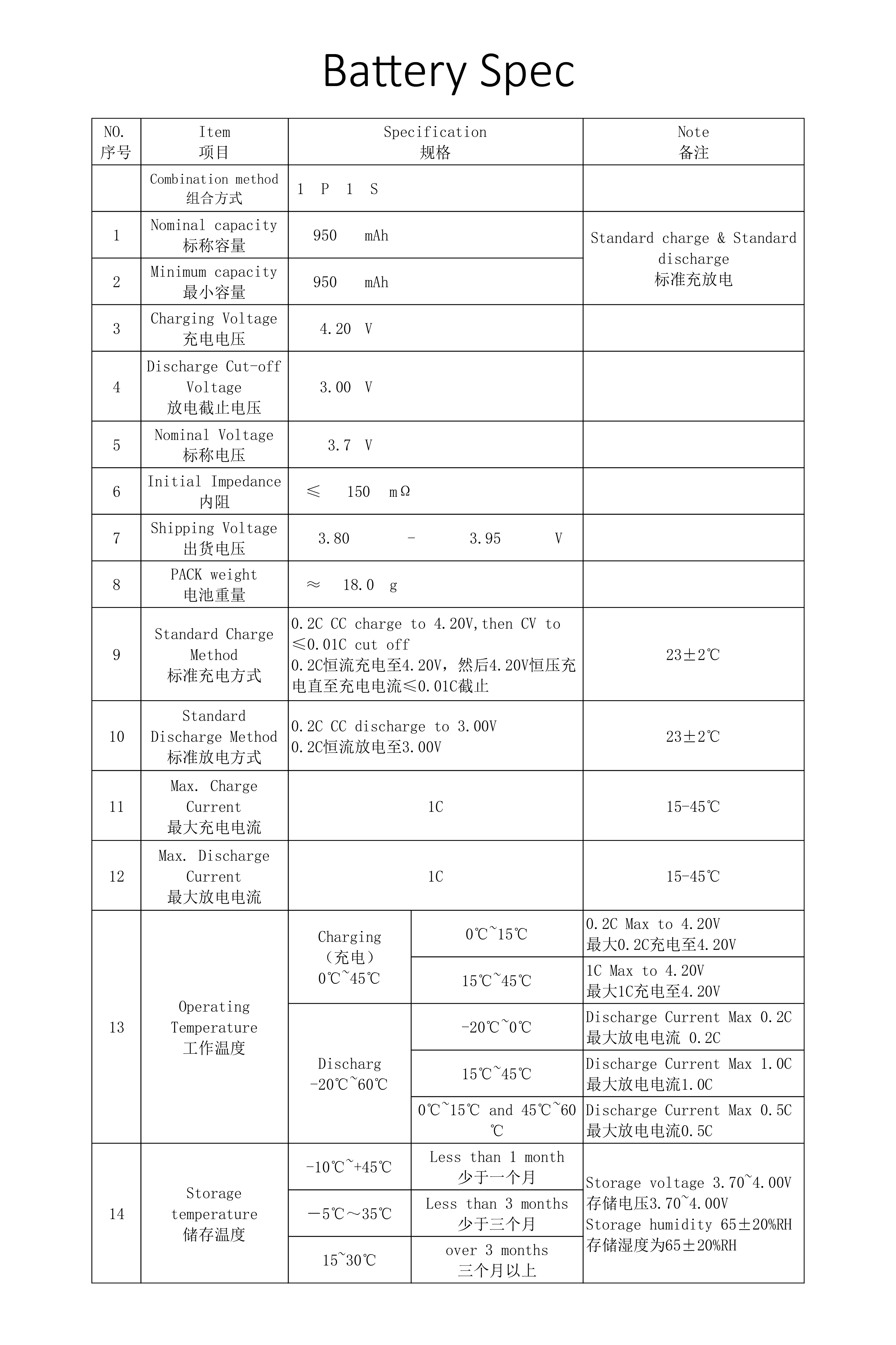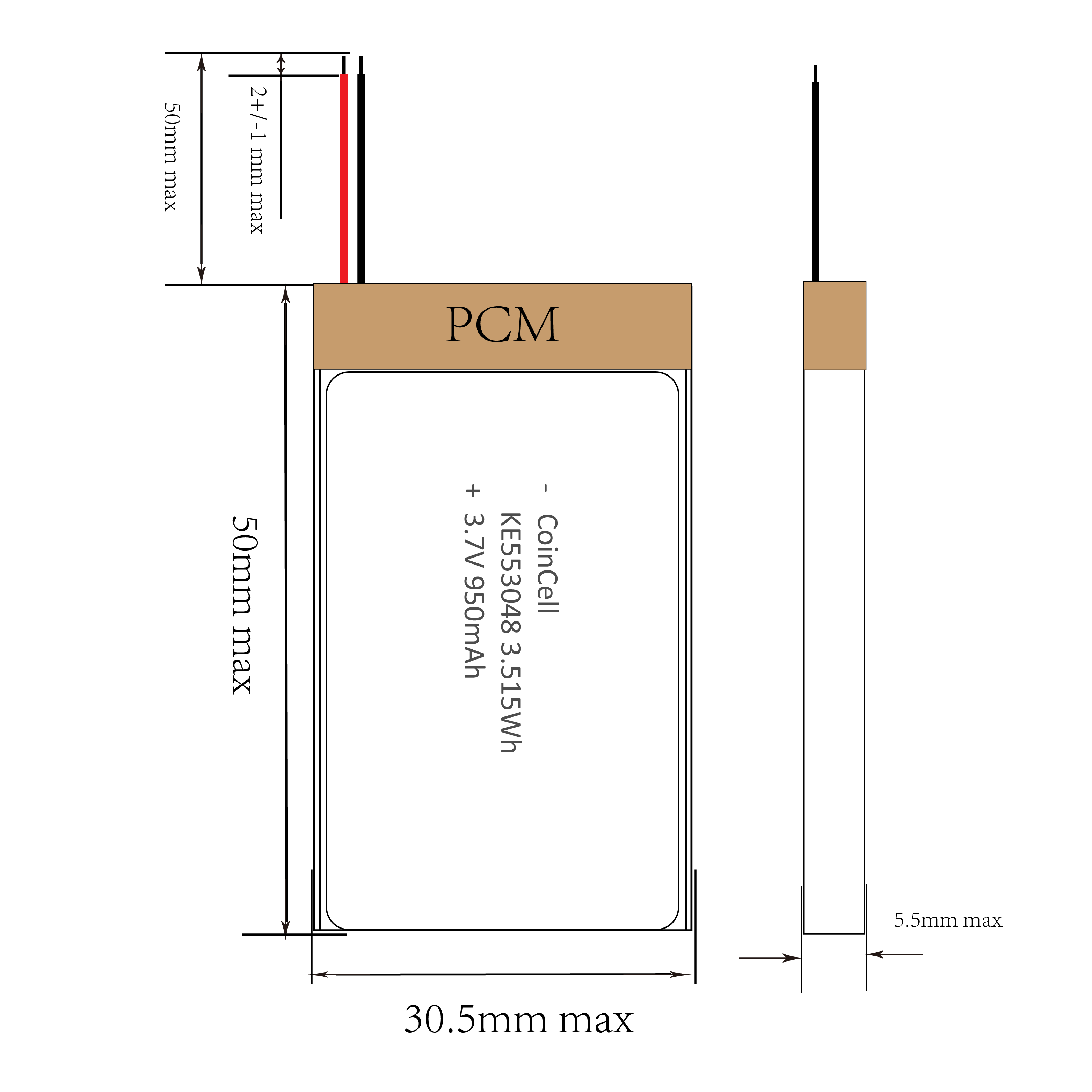 553048 3.7V 950mAh full spec: