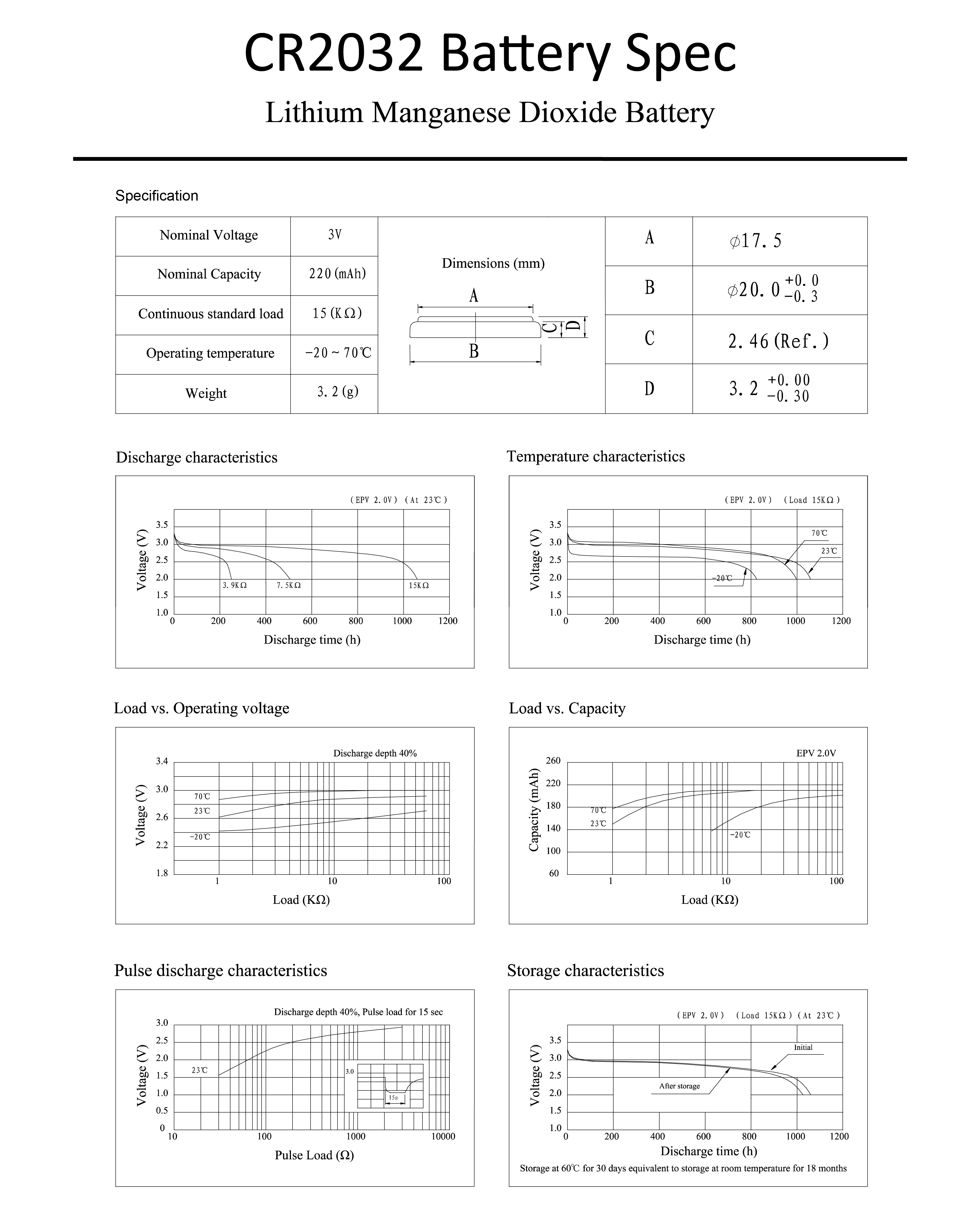 For CR2032 3V 220mAh full spec,