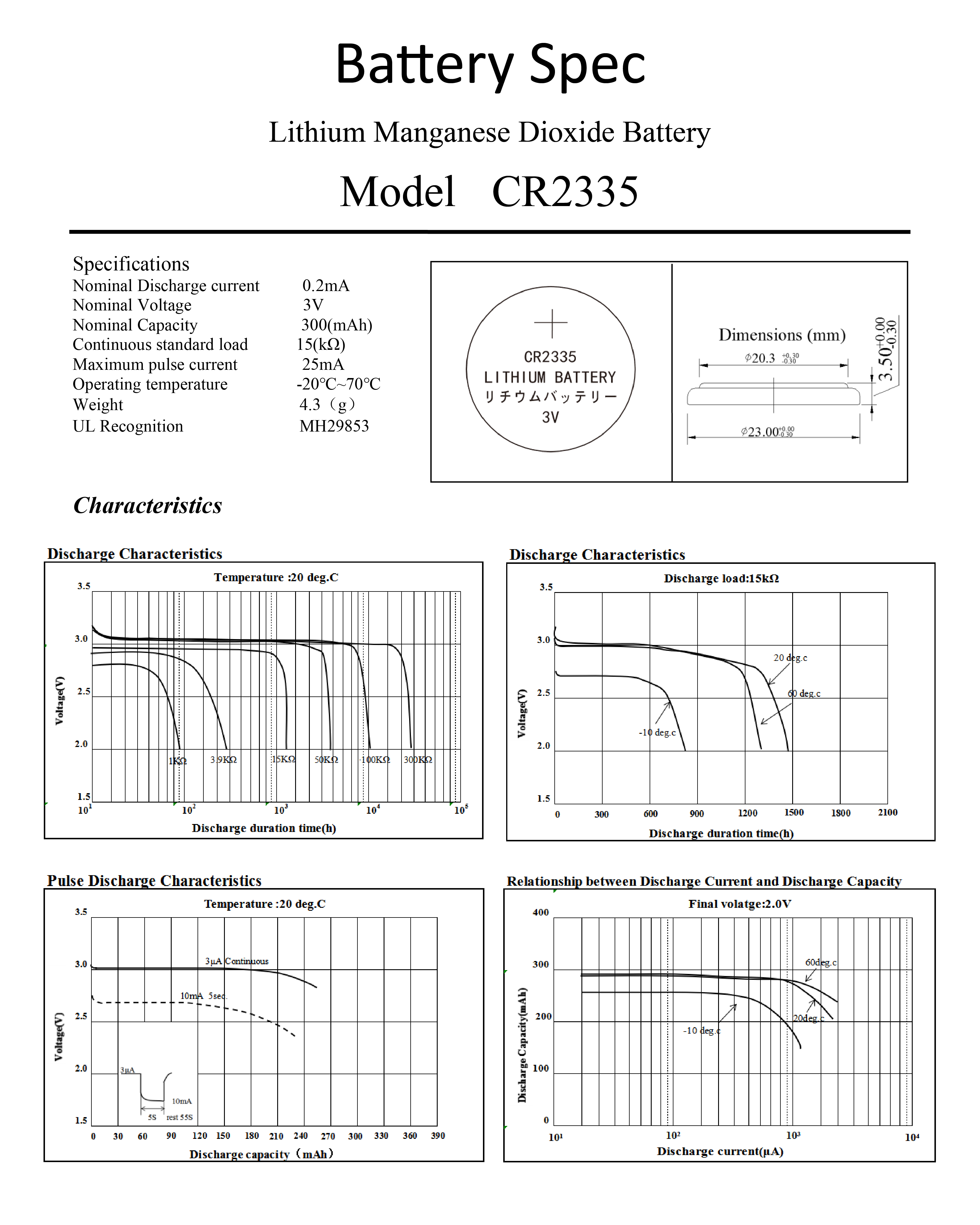 For CR2335 3V 300mAh full spec,