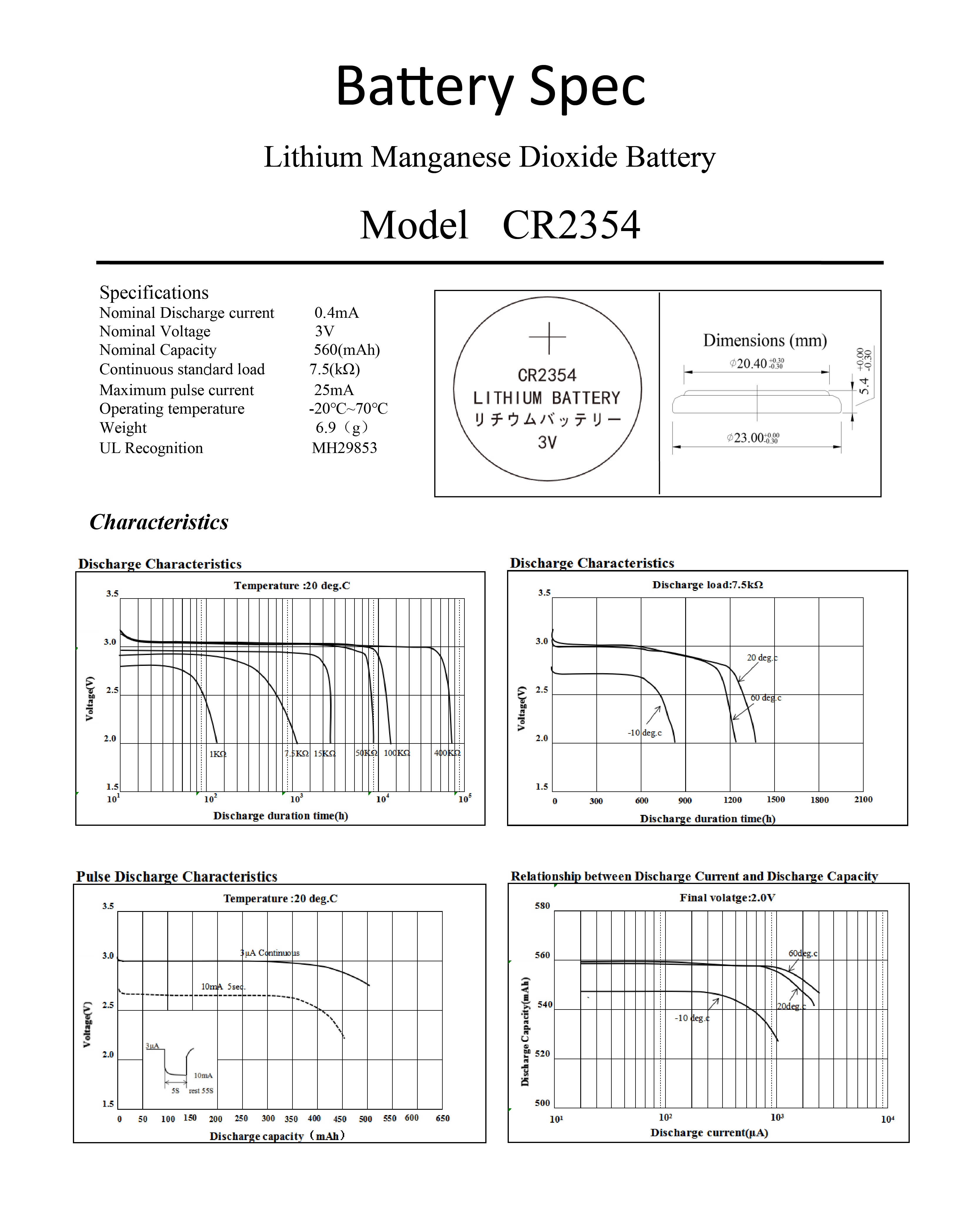 For CR2354 3V 560mAh full spec,
